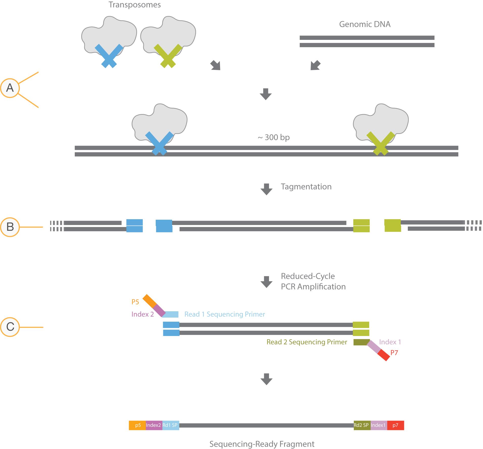 图1 Tn5转座酶DNA建库流程图(图片来源Illumina)