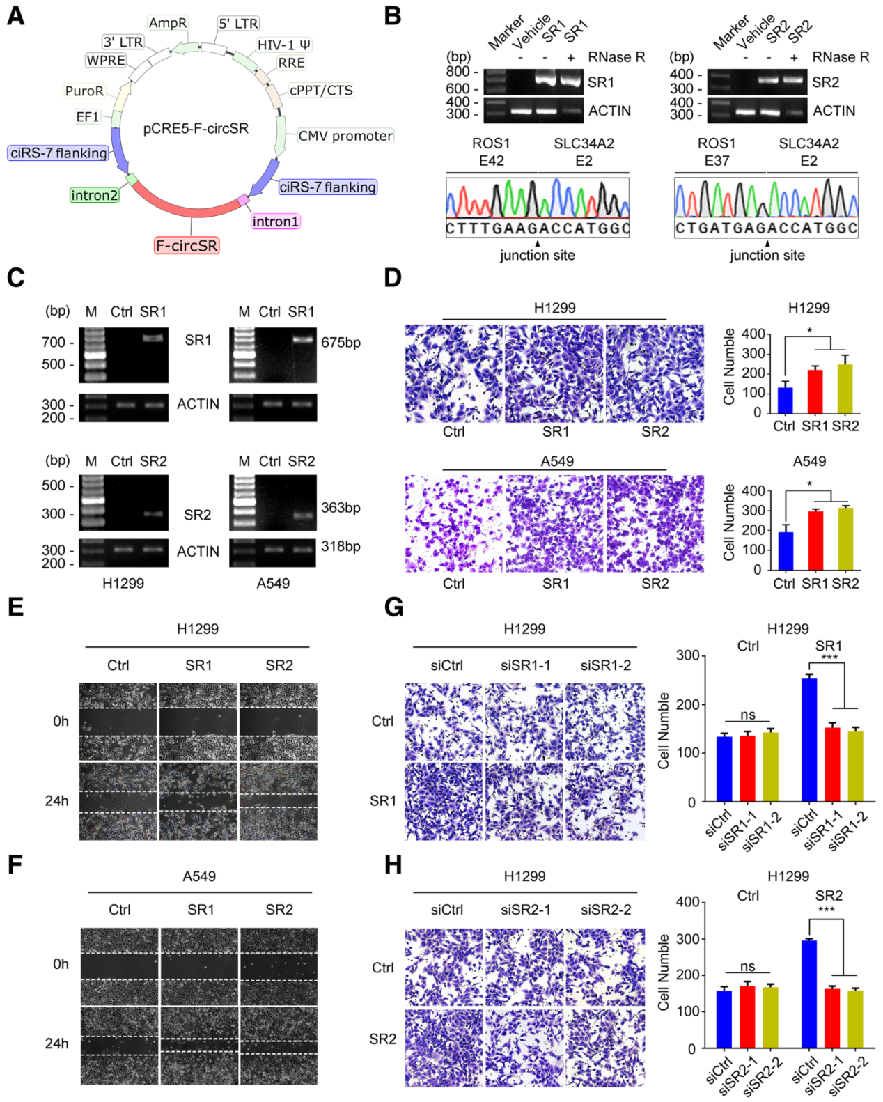 1. Wu, K., et al., Circular RNA F-circSR derived from SLC34A2-ROS1 fusion gene promotes cell migration in non-small cell lung cancer. Mol Cancer, 2019. 18(1): p. 98.