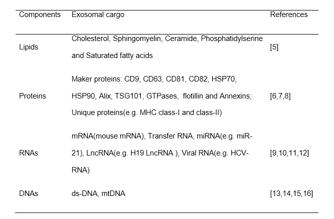 外泌体富含各种脂质、蛋白质、RNAs和DNAs。