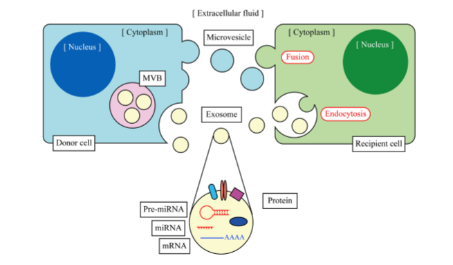 体外实验证实,小鼠和人源的肥大细胞释放的外泌体可以被其他肥大细胞摄取,外泌体携带的mRNA和miRNA在受体细胞中仍能发挥功能,也就是说被转运的外泌体mRNAs可以在受体细胞中翻译成新的蛋白,参与生理调控过程。