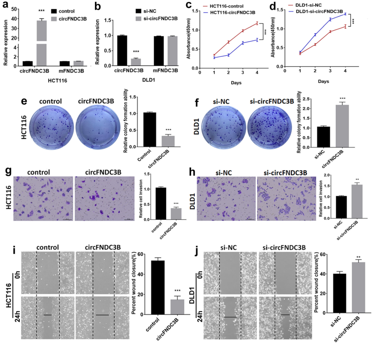 circFNDC3B抑制细胞增殖和迁移侵袭
