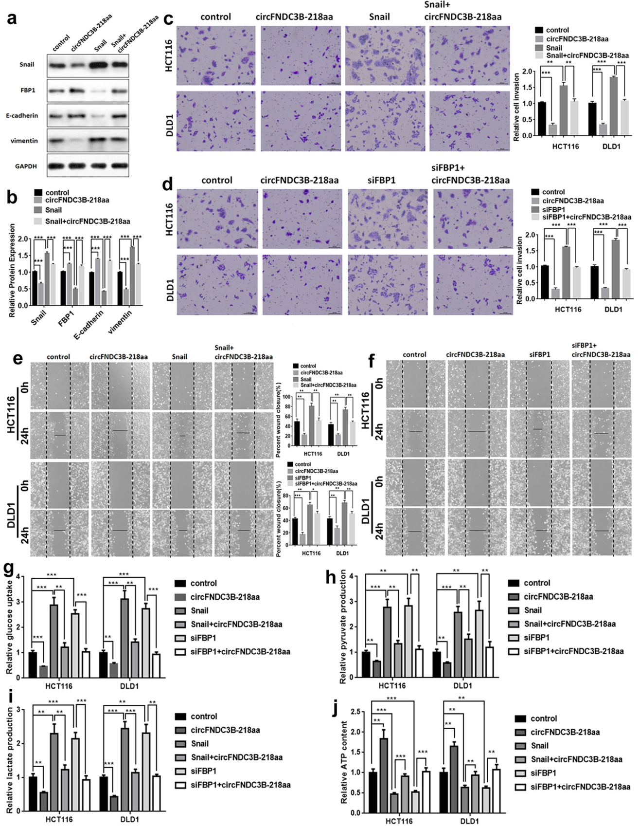 circFNDC3B-218aa调控Snai1和FBP1表达