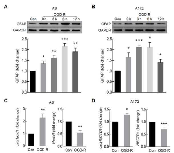 3. 星型胶质细胞活化在中风中发挥重要作用,circHECTD1能否影响星型胶质细胞活化?
