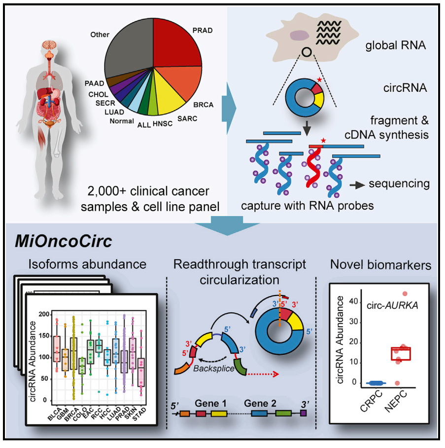 加拿大多伦多大学Paul C. Boutros教授和Housheng Hansen He教授为共同通讯作者的研究工作以Article形式发表在本期的Cell杂志,系统分析了局限性前列腺癌中circRNA表达特征[1]。另一篇文章通讯作者为密歇根大学Alexey I. Nesvizhskii和Arul M. Chinnaiyan1,以Resource形式发表,系统探索了人类肿瘤相关circRNA的表达情况[2]。下面我们分别概括介绍一下这两篇文章的主要内容,主要结论,以飨读者。