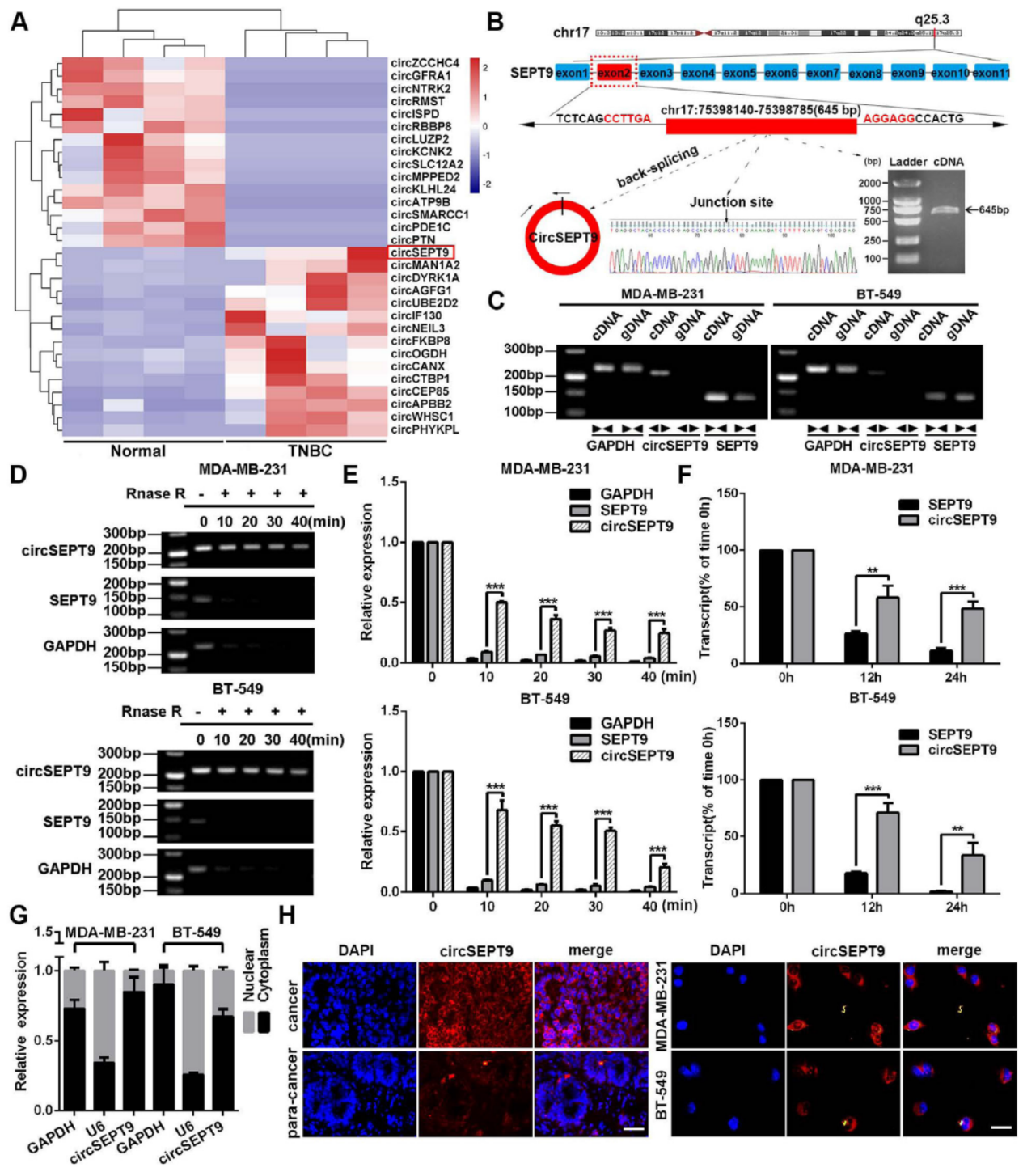 图1 三阴性乳腺癌中circSEPT9表达鉴定([1])