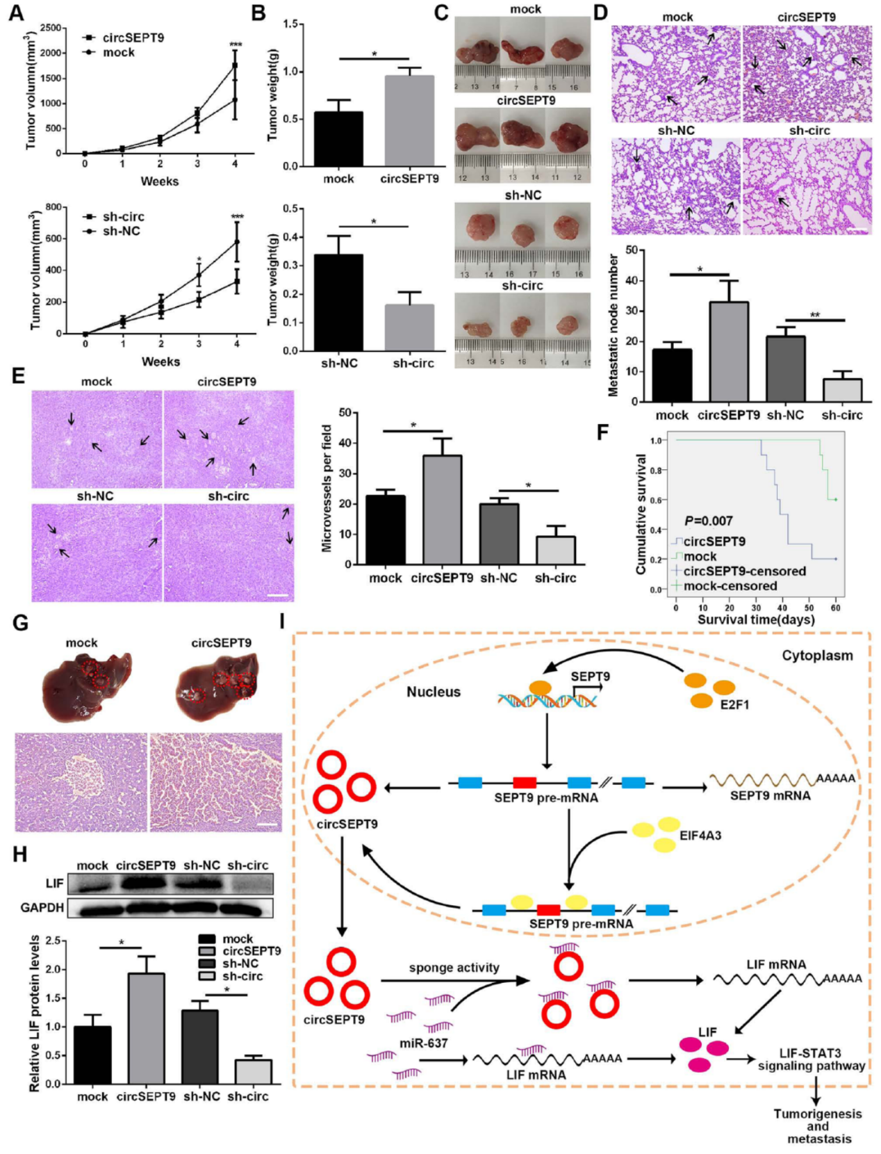 体内成瘤分析表明circSEPT9具有促癌作用,与肝转移有关