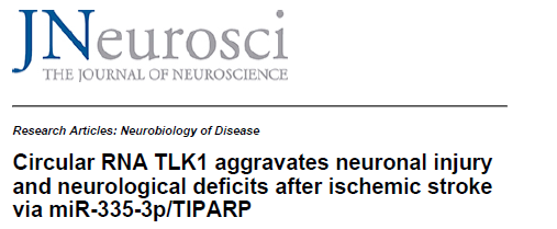 - Wu F , Han B , Wu S, et al. Circular RNA TLK1 aggravates neuronal injury and neurological deficits after ischemic stroke via miR-335-3p/TIPARP. J Neurosci. 2019 Jul 16. pii: 0299-19. doi: 10.1523/JNEUROSCI.0299-19.2019.(解读用图均来自此文献)