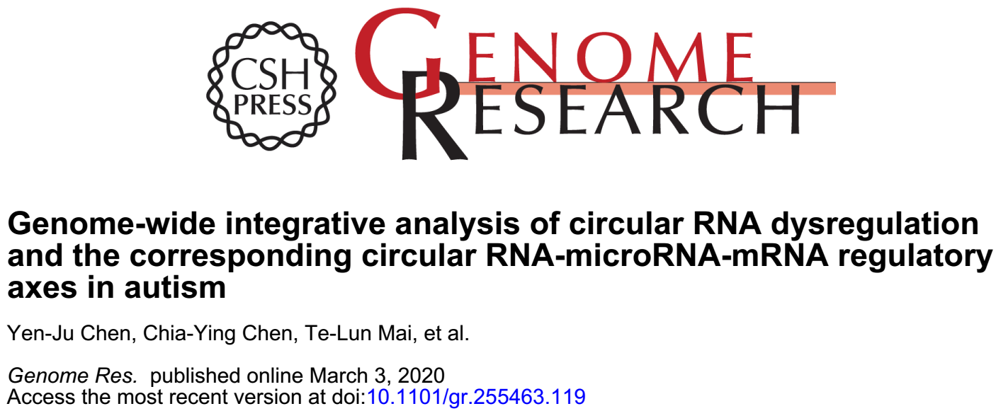 3 月 3 日,台湾中央研究院基因组学研究中心的庄树谆团队在冷泉港期刊 Genome Research 上发表了一篇关于 circRNA 与 ASD 的文章: