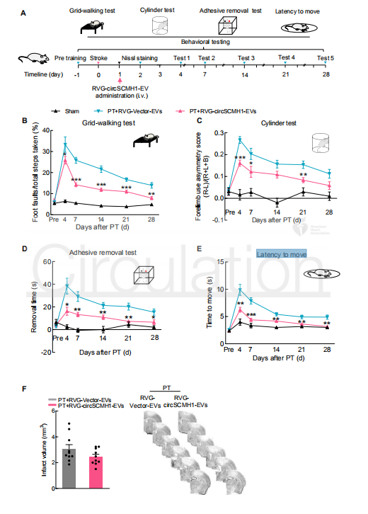 RVG-EV递送circSCHM1促进PT小鼠的功能恢复