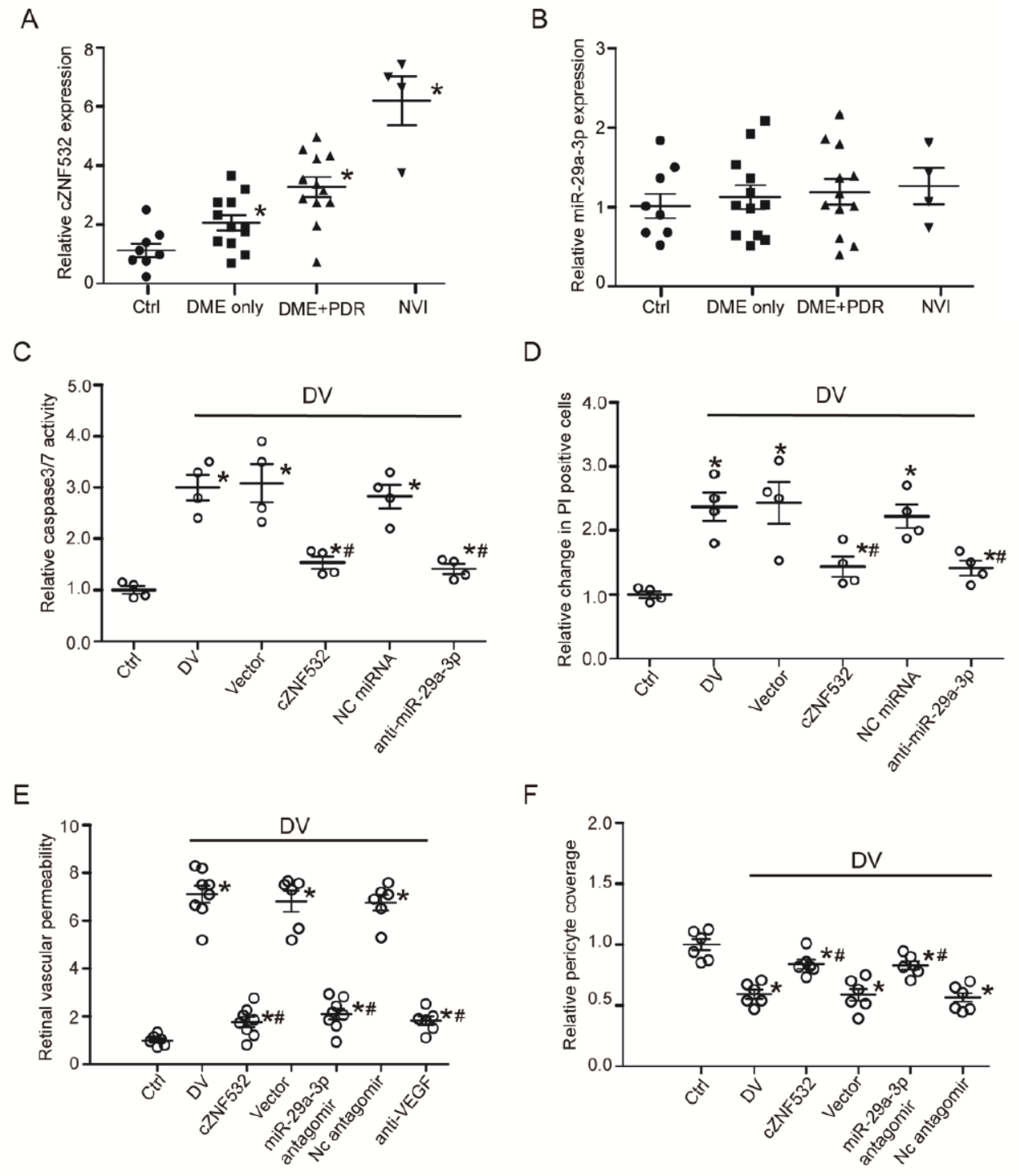 最后,作者在临床标本中检测了cZNF532和miR-29a-3p的表达,Caspase-3/7活性,细胞凋亡水平,血管通透性及周细胞覆盖度的关系。结果显示,该通路与视网膜血管功能障碍中有一定的关系。