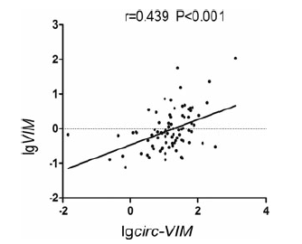波形蛋白(VIM)是 III型中间丝的主要成分。波形蛋白是由VIM基因编码的,并且普遍表达在内皮细胞和其他间充质细胞。 VIM在许多重要的生理和病理过程发挥作用,如粘连,迁移,细胞信号传导,炎症,神经突延伸和血管形成。 在包括肺癌、肝癌、乳腺癌、胃肠癌、中枢神经系统癌症、恶性黑色素瘤和造血恶性肿瘤等不同上皮肿瘤中发现了表达水平增加的VIM,可能与肿瘤生长,侵袭和预后不良有关。 Circ-VIM,是由VIM基因产生的circRNA,在这些癌症中很少被研究过,更不用说Circ-VIM 在AML中的相关研究了。 这项研究的目的是调查和分析Circ-VIM在AML患者中的表达情况及探讨其临床相关性和与基因VIM的相关性。