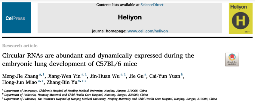 Zhang, M. J., Yin, J. W., Wu, J. H., Gu, J., Yuan, C. Y., Miao, H. J., & Yu, Z. B. (2020). Circular RNAs are abundant and dynamically expressed during the embryonic lung development of C57BL/6 mice. Heliyon, 6(3), e03437.