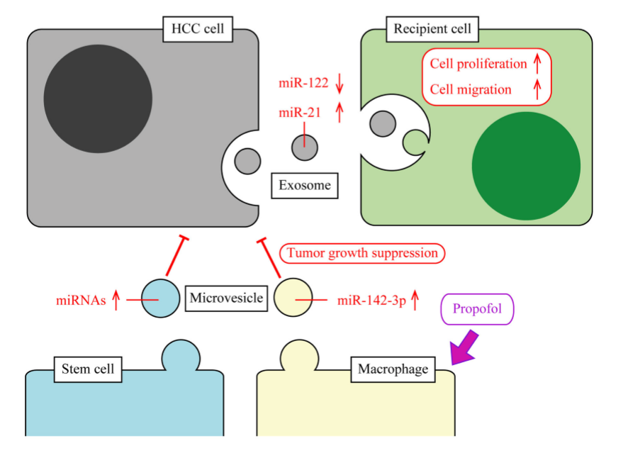 肝细胞癌(HCC)患者中,血清外泌体miR-21、-18a、-221、-222和miR-224显著上升,miR-101、-106b、-122和miR-195显著下降。而HCC患者肝移植复发后,血清外泌体miR-718水平显著下降。除外泌体外,微泡也有可能作为新型标志物,研究发现HCV感染者中CD4+和CD8+T细胞来源的微泡含量上升;而肝脏干细胞分泌的微泡中多种miRNAs上调。