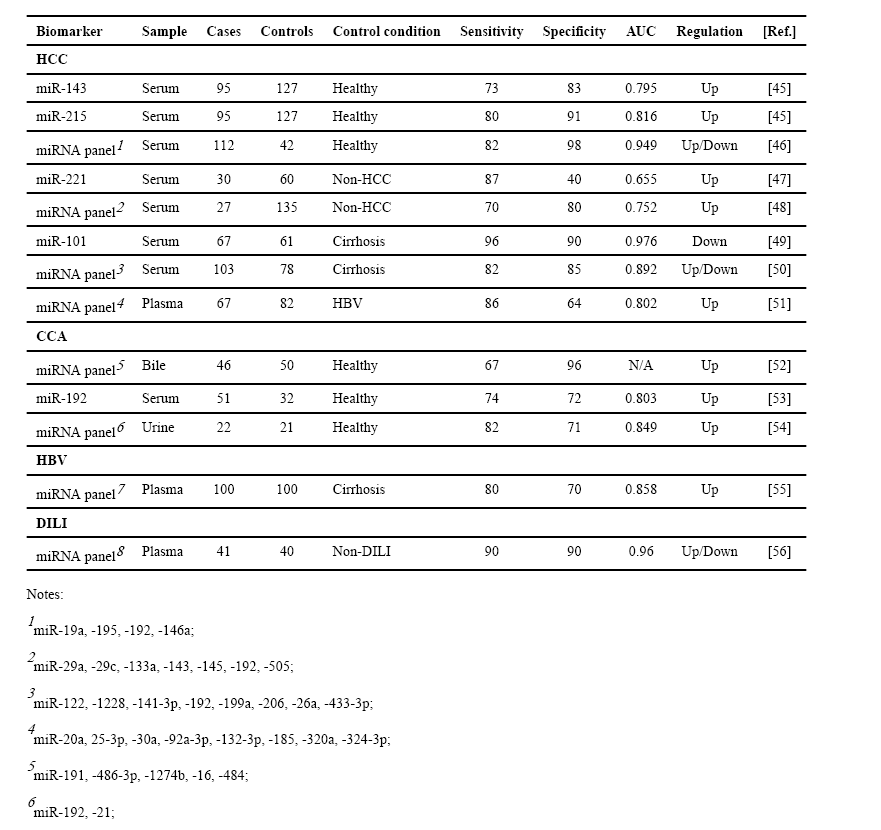 这表明,miRNA在肝病发展中起着重要作用,但即使是同一个miRNA,根据肝脏疾病的不同,其表达也存在差异。