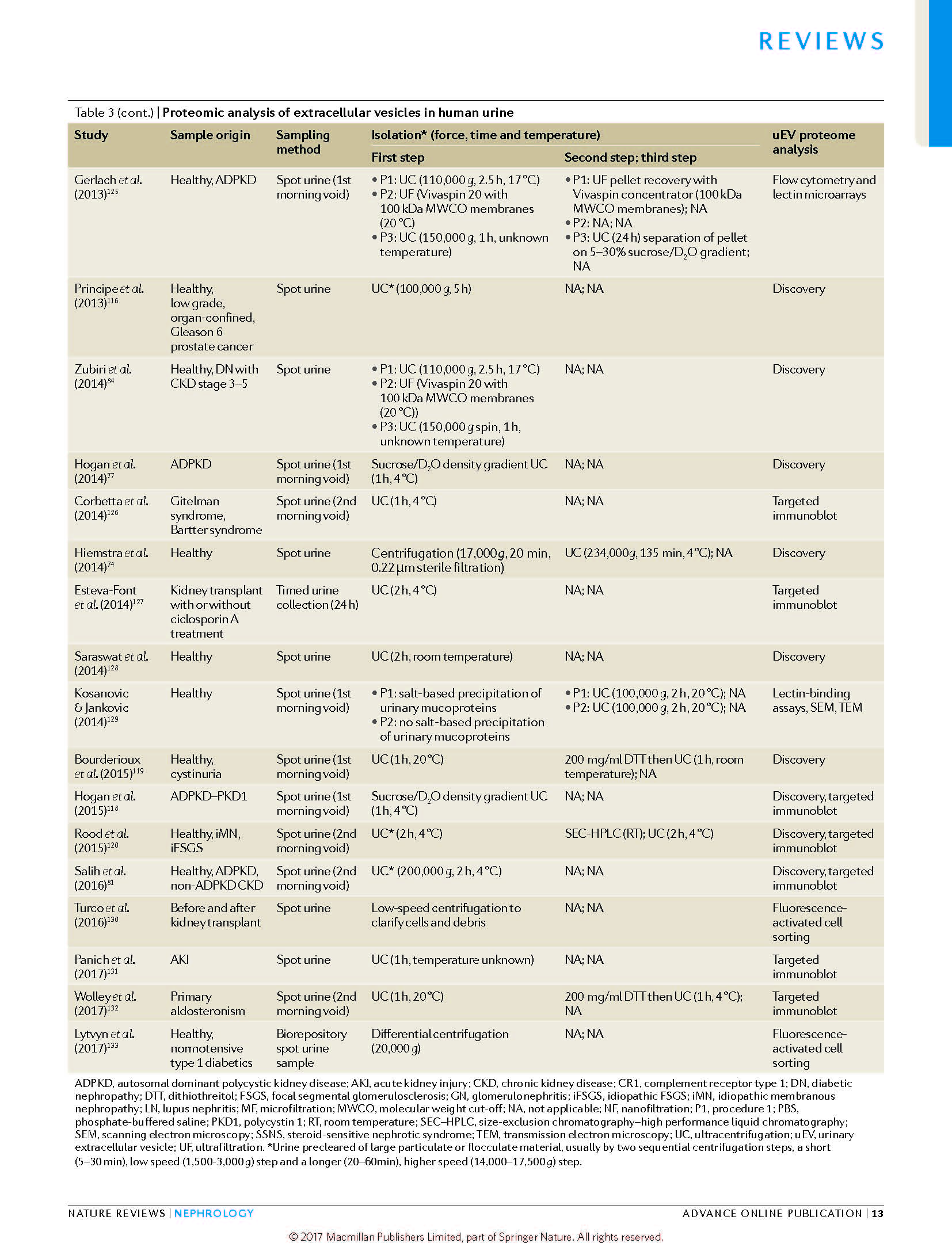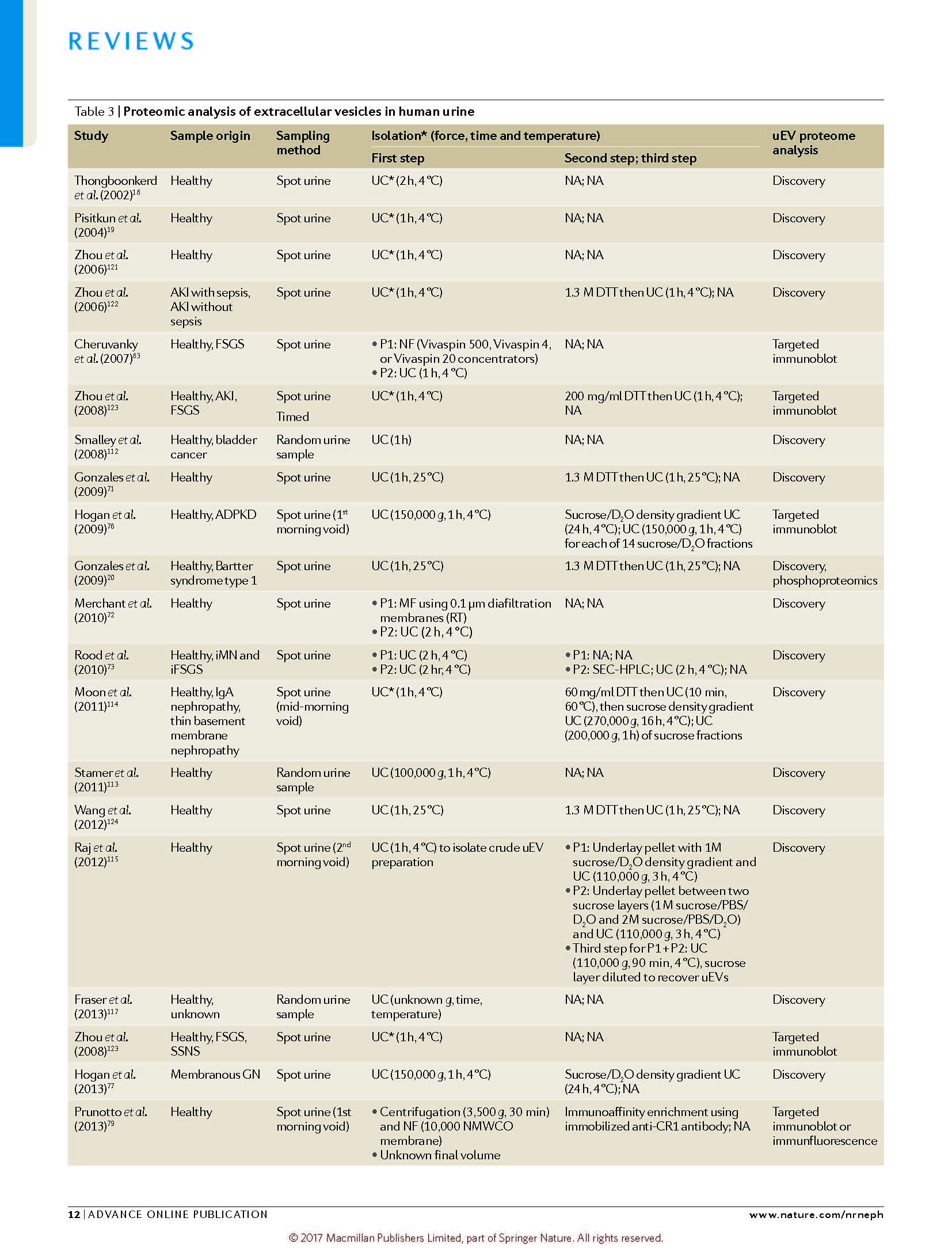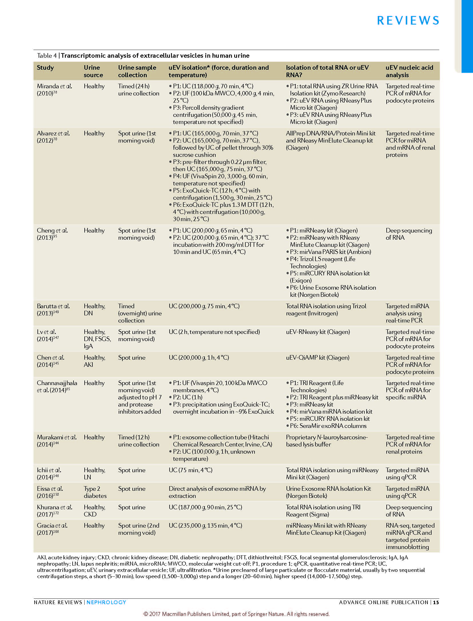 Merchant ML, et al. Isolation and characterization of urinary extracellular vesicles: implications for biomarkerdiscovery. Nat Rev Nephrol. 2017 Dec;13(12):731-749.