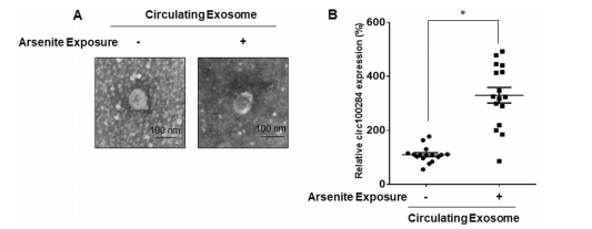 7.长期暴露于亚砷酸盐的人群血清外泌体中circRNA_100284水平显著上调