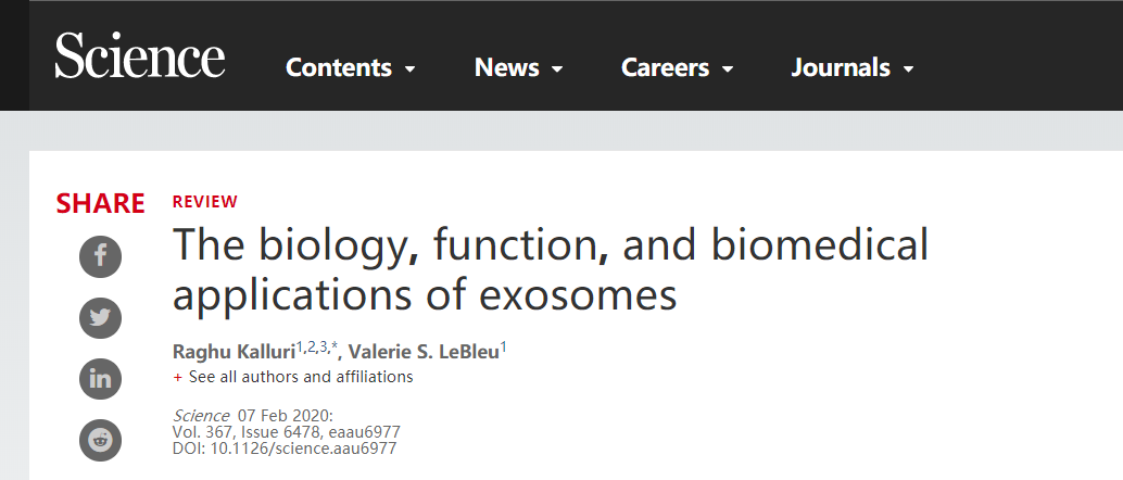 1. LeBleu, R.K.a.V.S., The biology, function, and biomedical applications of exosomes. Science, 2020. 367(6478).