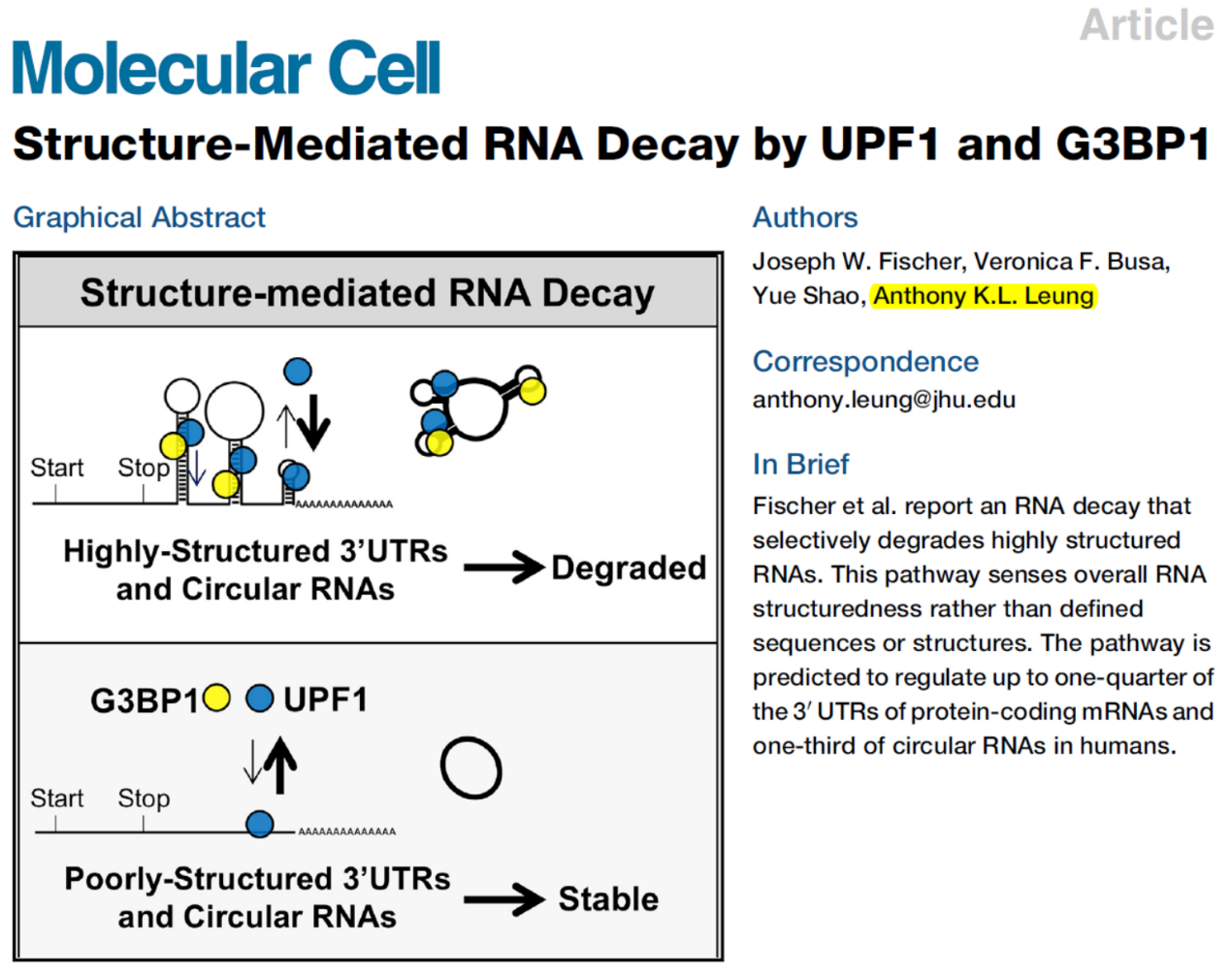 1. Fischer, J.W., et al., Structure-Mediated RNA Decay by UPF1 and G3BP1. Mol Cell, 2020.