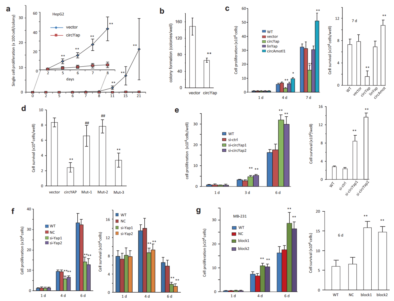 功能实验表明circYAP抑制克隆形成,抑制增殖,上述的两个封闭探针能抑制circYAP的这些功能。