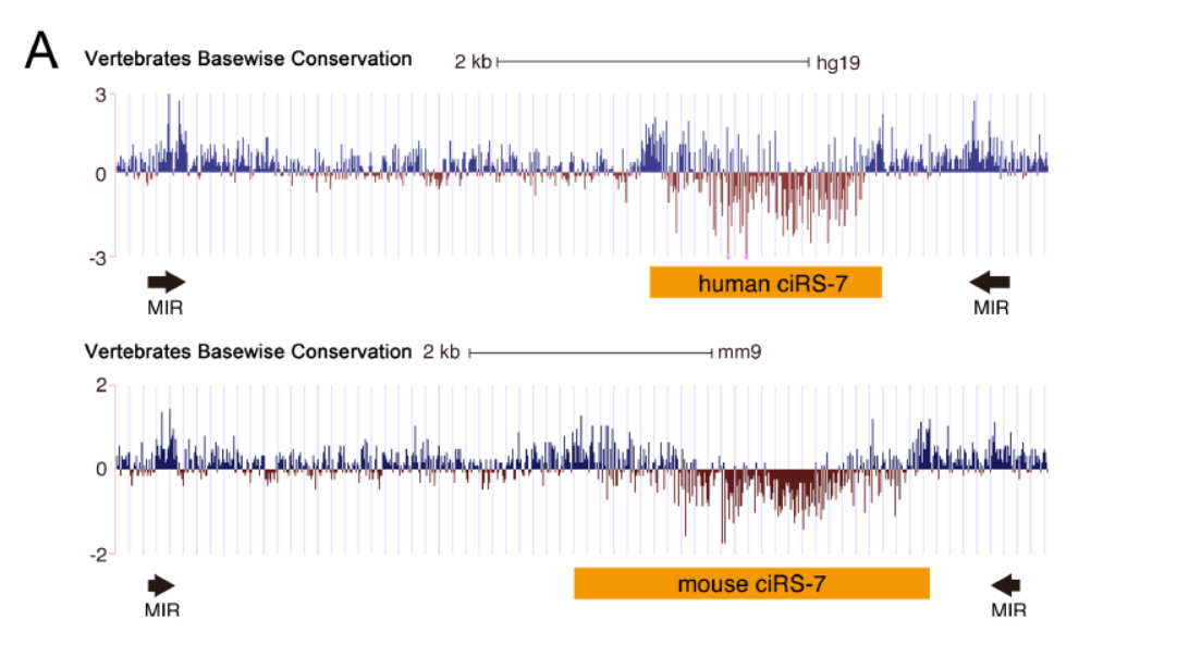 人与小鼠CDR1as两侧存在反向MIR元件([1])