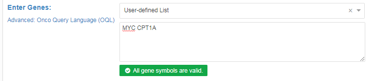 - 可同时输入多个基因名称,以空格隔开即可,系统会检验你输入的基因名称是否正确或者数据是否存在这个基因的表达,出现绿色标签“All gene symbols are valid”,说明你输入基因正确,如
