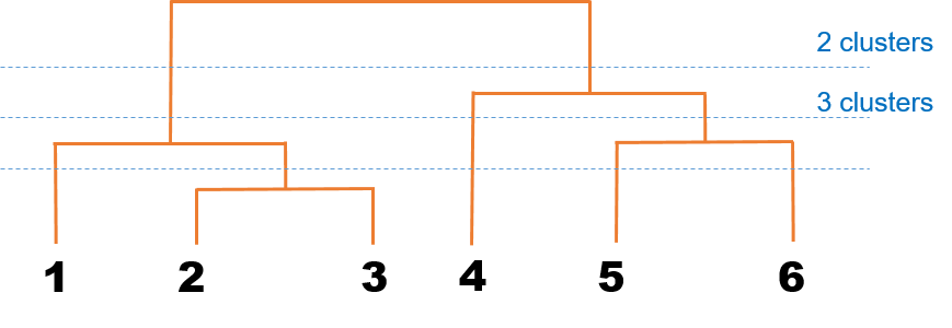 实际上,热图的顶部面板的树状图与左侧面板密密麻麻的树状图展示的就是层次聚类的基本思路:计算两个对象之间的距离,然后根据距离划分类别(如图)。