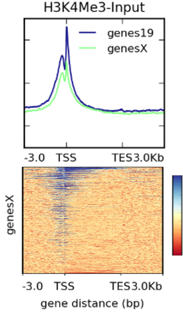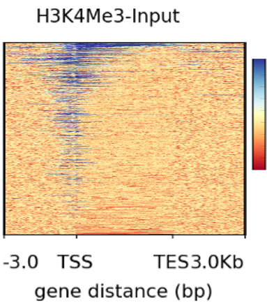 所以,这幅图展示给我们的是:H3K4me3 结合的 tags 主要富集到了转录起始位点 TSS 的上下游区域。