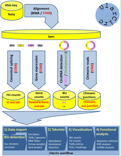 上图给出了 Ularcirc 的流程图,可以看出这款软件是主要依赖于 STAR 的比对结果