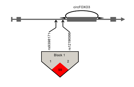 参考文献[1]:Zhou YL, Wu WP, Cheng J, et al. CircFOXO3 rs12196996, a polymorphism at the gene flanking intron, is associated with circFOXO3 levels and the risk of coronary artery disease [published online ahead of print, 2020 Jul 2]. Aging (Albany NY). 2020;12:10.18632/aging.103398. doi:10.18632/aging.103398