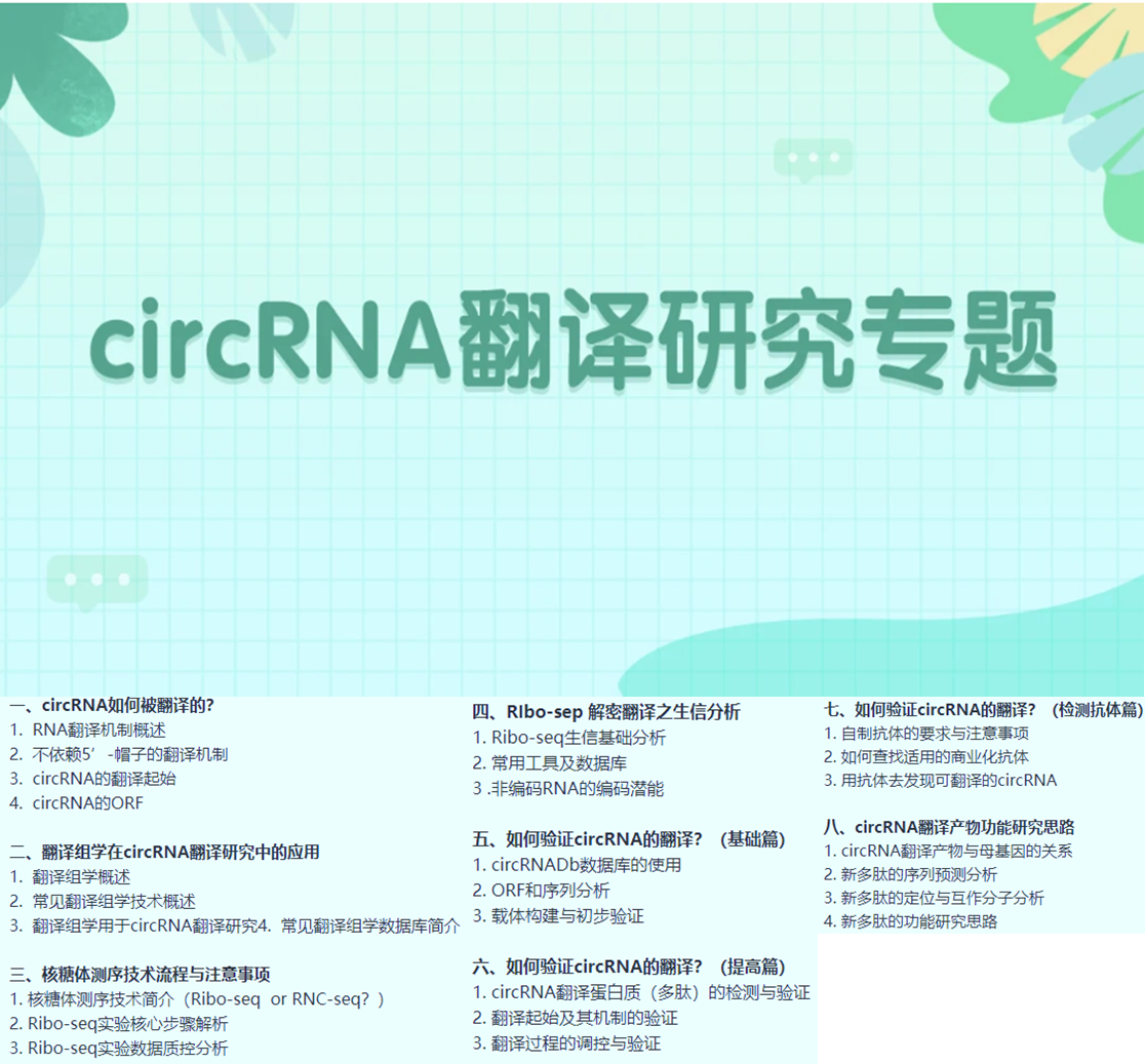 当然,关于 IRES 介导 circRNA 肯定还有很多故事,如果大家对 circRNA 翻译非常感兴趣,也可以参加我们的课程