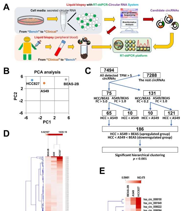图注:利用RNA-seq和RT-ddPCR技术鉴定肺癌相关的circRNA标志物