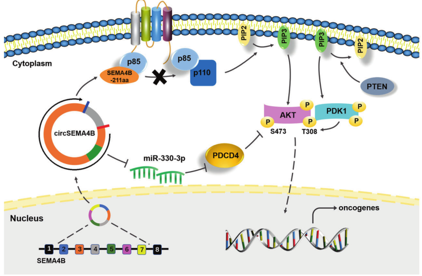 图7.CircSEMA4B和SEMA4B-211aa的作用机制