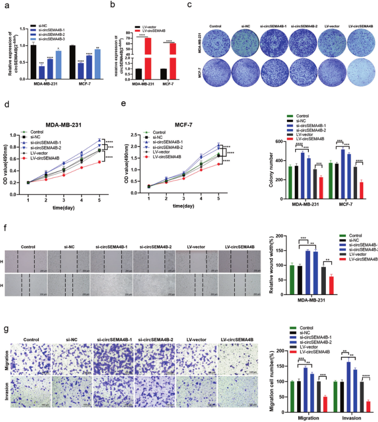 图2.CircSEMA4B抑制BC细胞的增殖、迁移和侵袭能力
