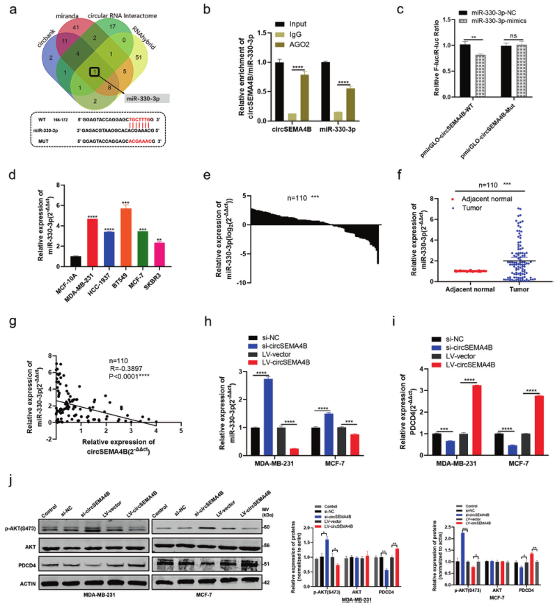 图6.CircSEMA4B通过作为miR-330-3p的海绵