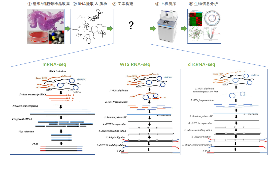 mRNA-seq、全转录组RNA-seq以及circRNA-seq的不同建库方式
