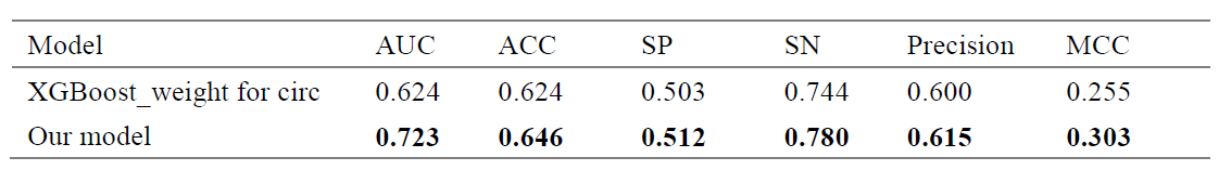 表1.DeepCIP和XGBoost_weight对circRNA IRES预测的比较结果