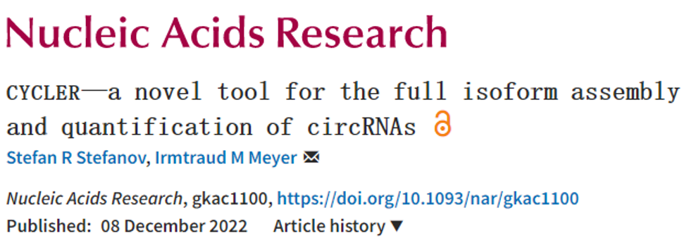 Stefanov, Im M .CYCLER- a novel tool for the fullisoformassembly and quantification of circRNAs[J]. Nucleic Acids Research, 2022.