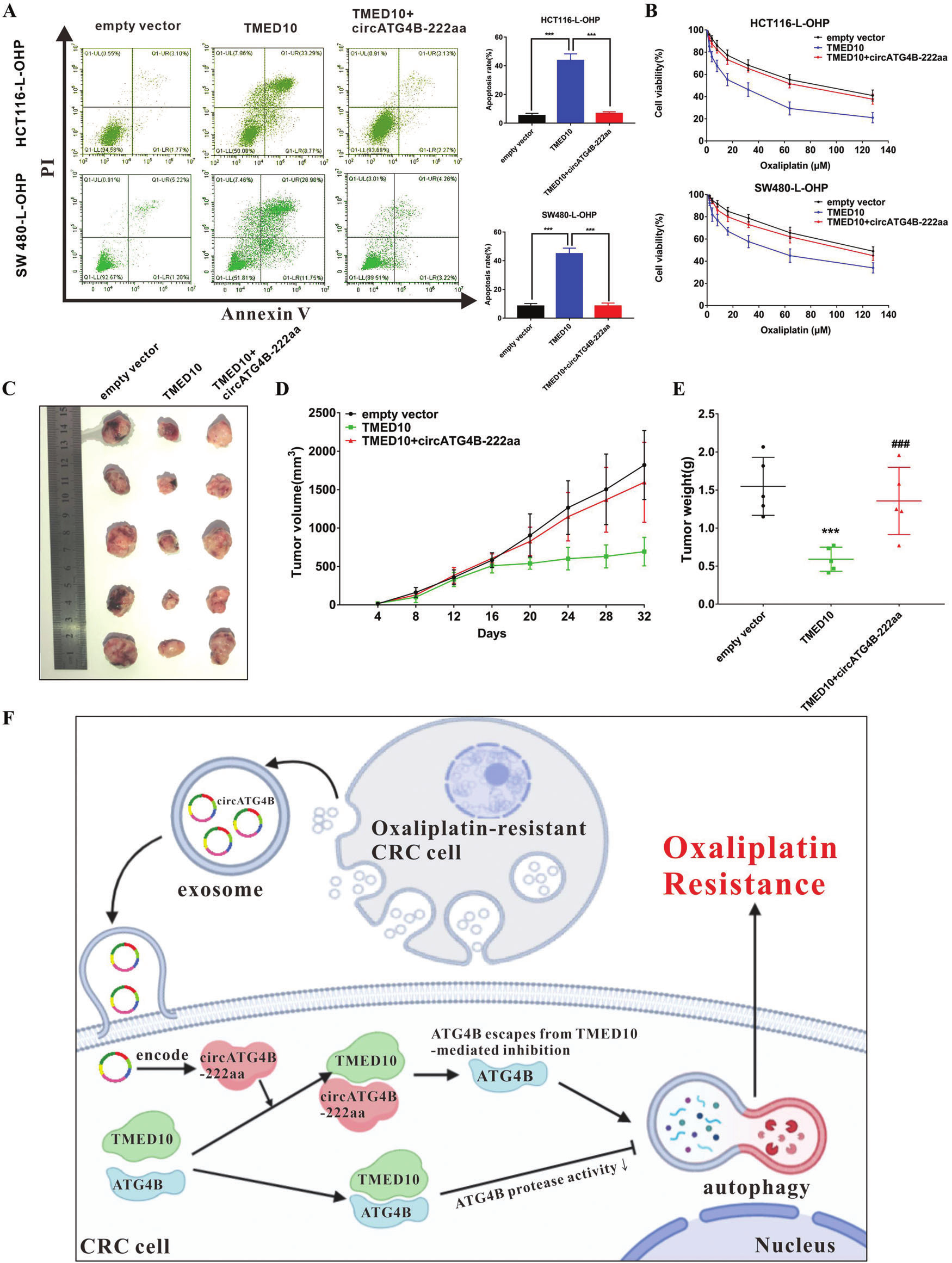 图7.circATG4B-222aa拮抗TMED10作用,诱导细胞L-OHP耐药
