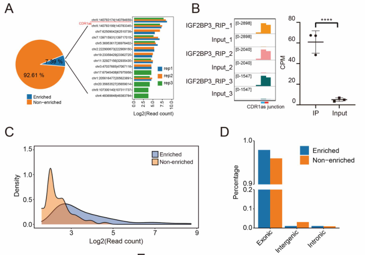 图3. 基于RIP-Seq数据的IGF2BP3富集circRNA的鉴定