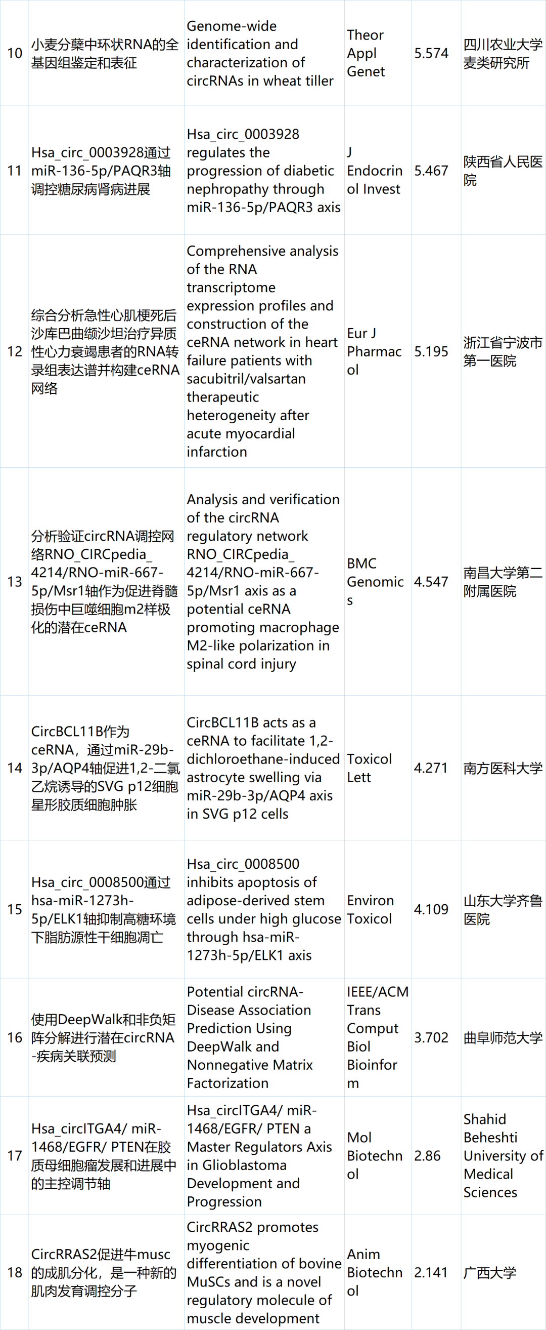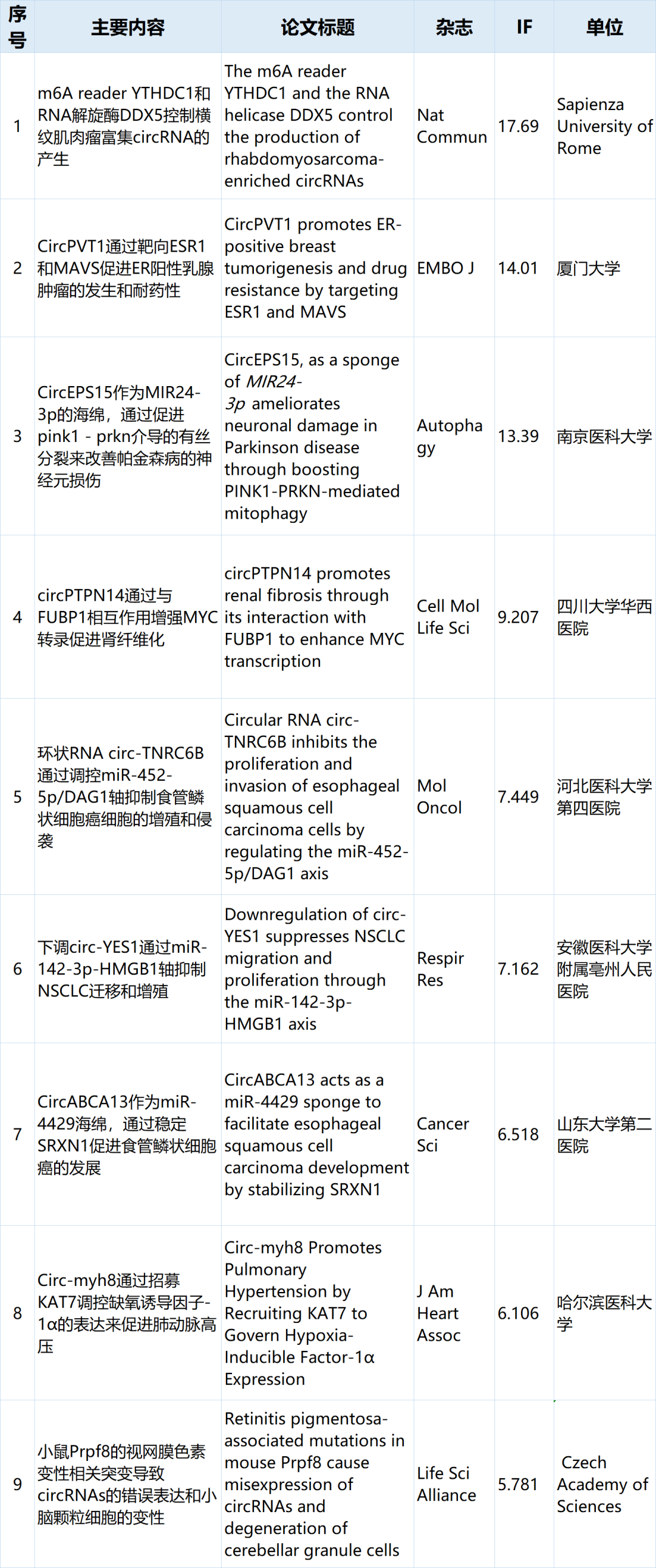 欢迎各位来到“circRNA研究报道汇总”栏目,本期从pubmed中检索收集最新发布的circRNA文献共计18篇,下面我们一起来看看,circRNA研究最近有哪些新进展。 检索式:(circRNA[Title/Abstract]) OR circular RNA[Title/Abstract] 研究汇总列表 转载请联系邮箱授权:circRNA@163.com 分类: 最新重要进展, 每周进展汇总, 研究热点跟踪admin四月 12, 2023评论