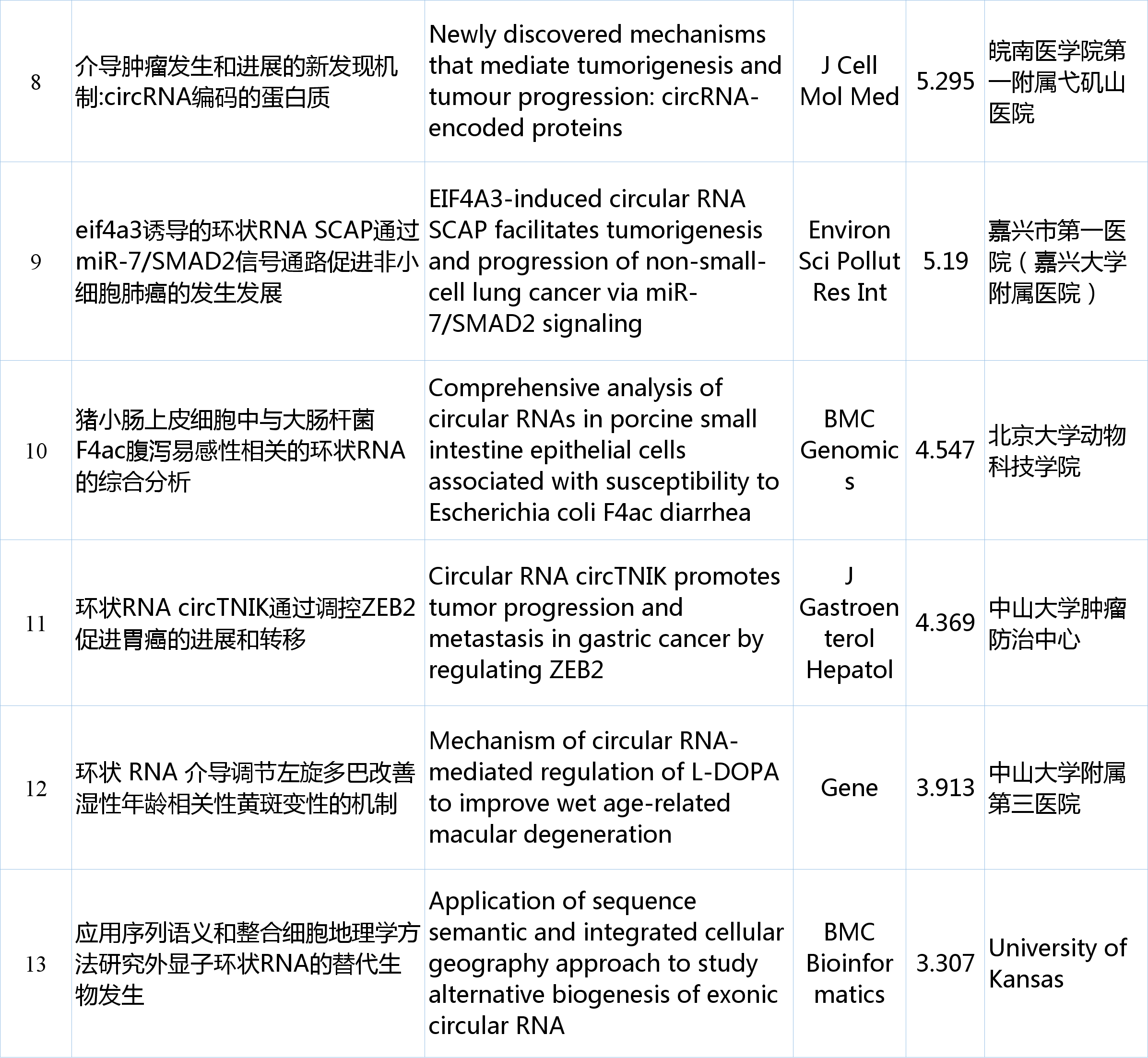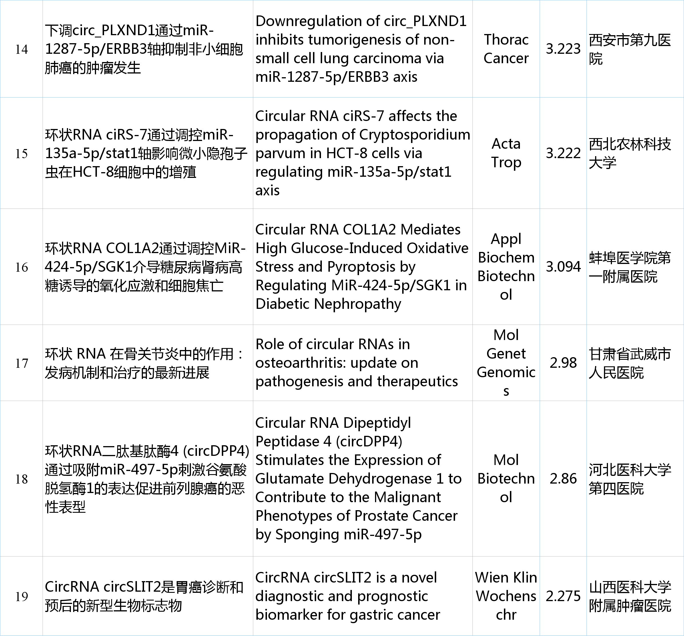 欢迎各位来到“circRNA研究汇总”栏目,本期从pubmed中检索收集最新发布的circRNA文献共计19篇,现在让我们一起看看circRNA研究最近有哪些新进展。