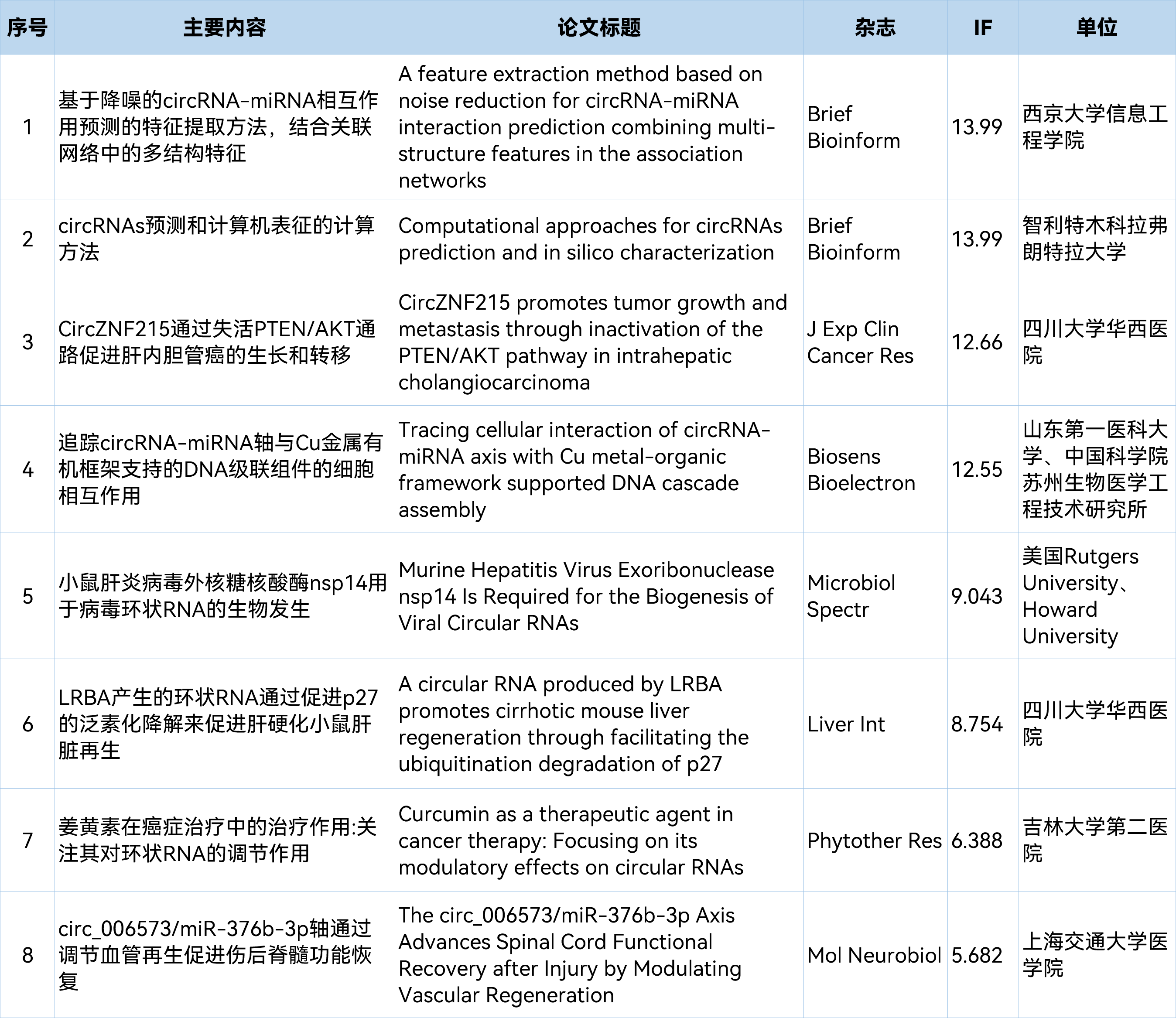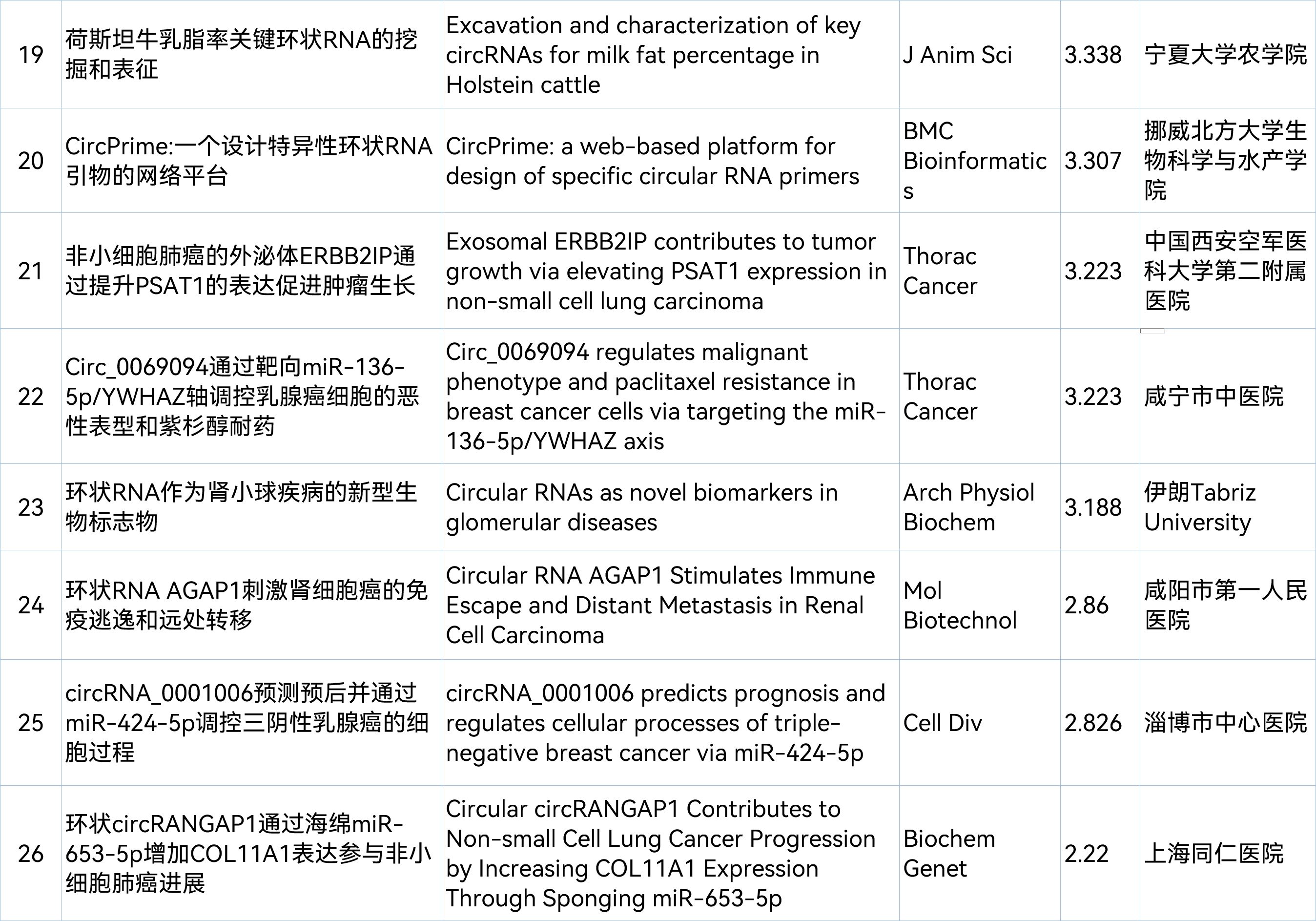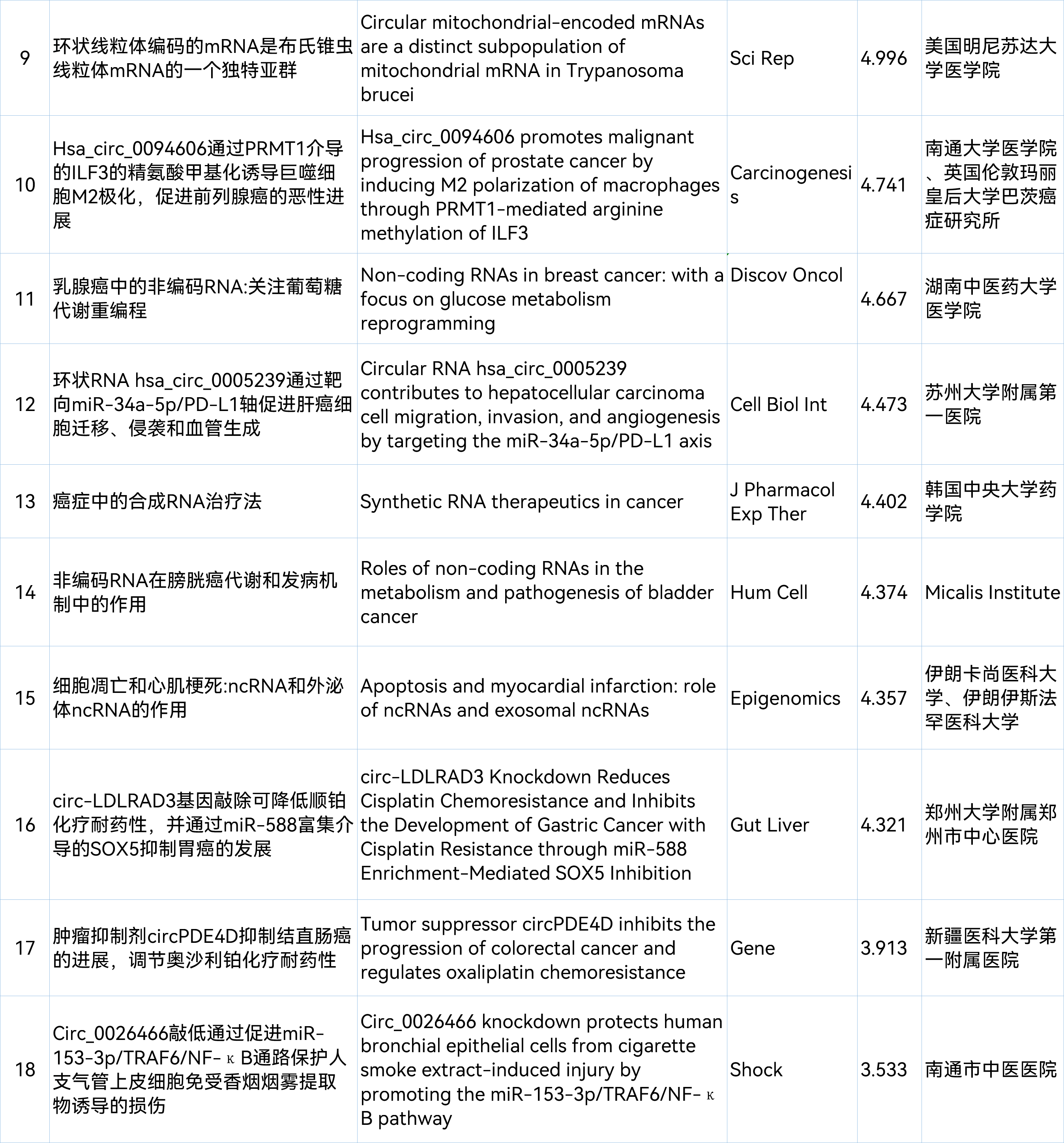 欢迎各位来到“circRNA研究汇总”栏目,本期从pubmed中检索收集最新发布的circRNA文献共计26篇,现在让我们一起看看circRNA研究最近有哪些新进展。 检索式:(circRNA[Title/Abstract]) OR circular RNA[Title/Abstract] 研究汇总列表 分类: circRNA与疾病, circRNA生物学, 前沿动态, 最新重要进展, 每周进展汇总, 研究热点跟踪admin五月 22, 2023评论