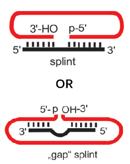 图6 T4连接酶法利用夹板链或辅助链制备circRNA