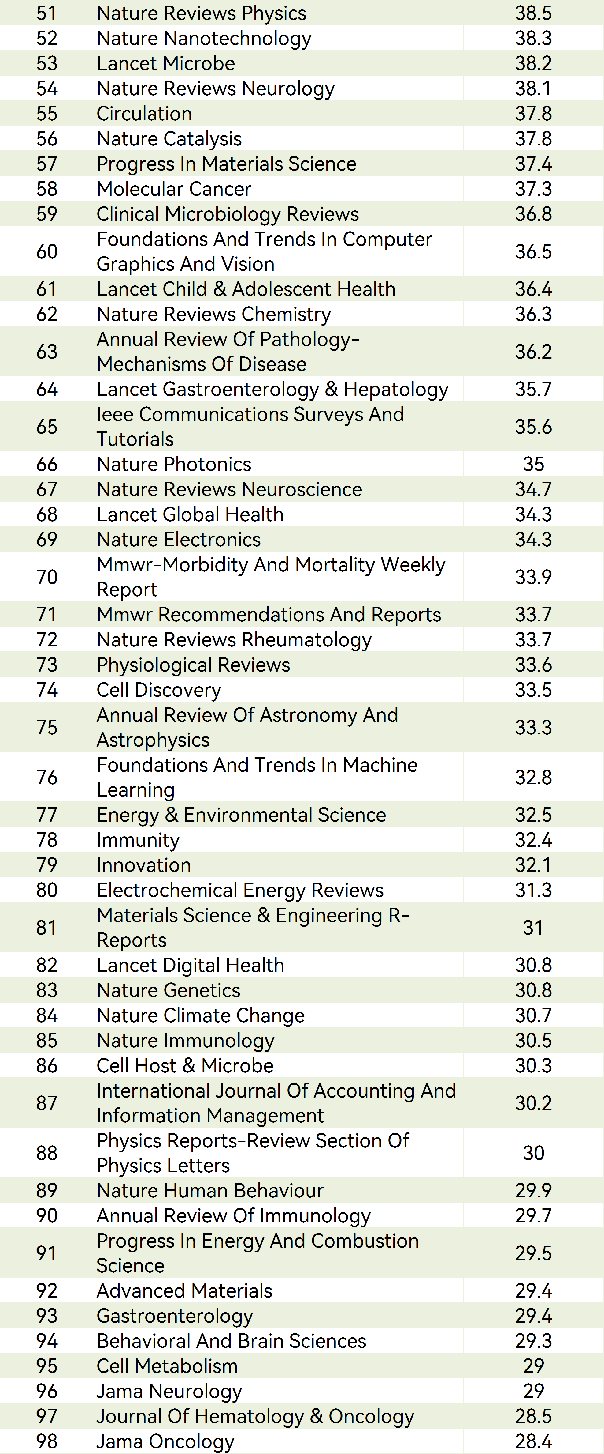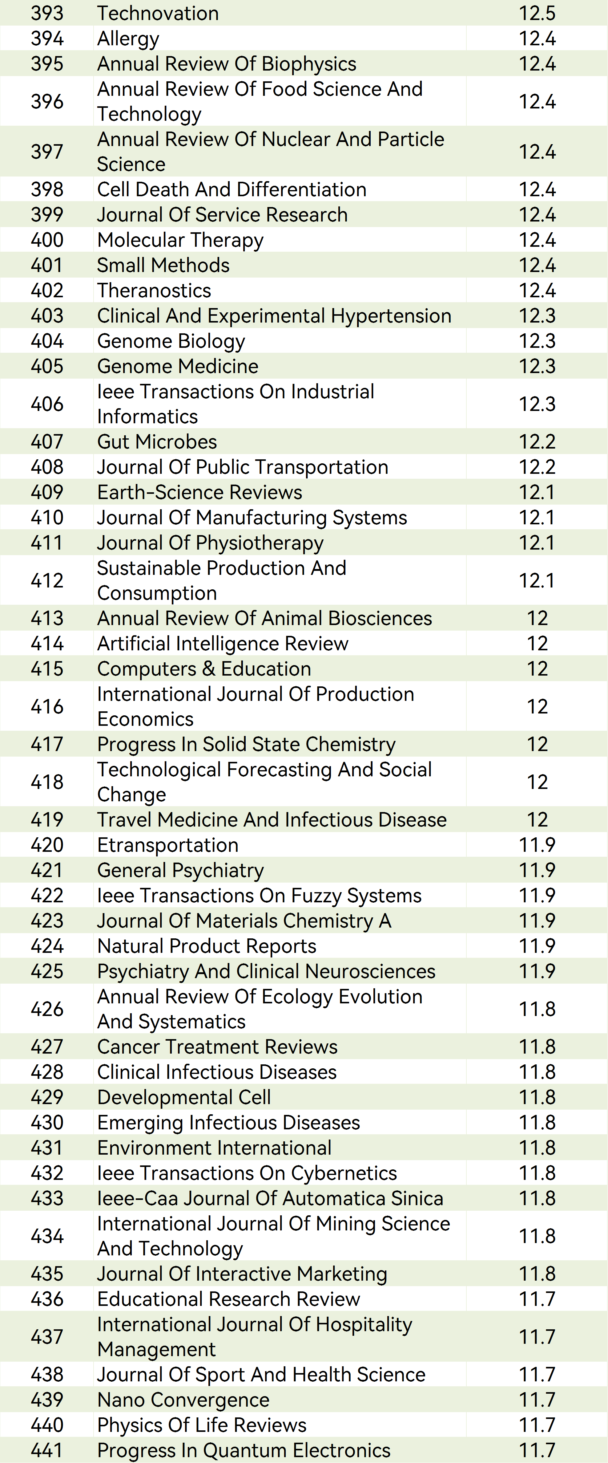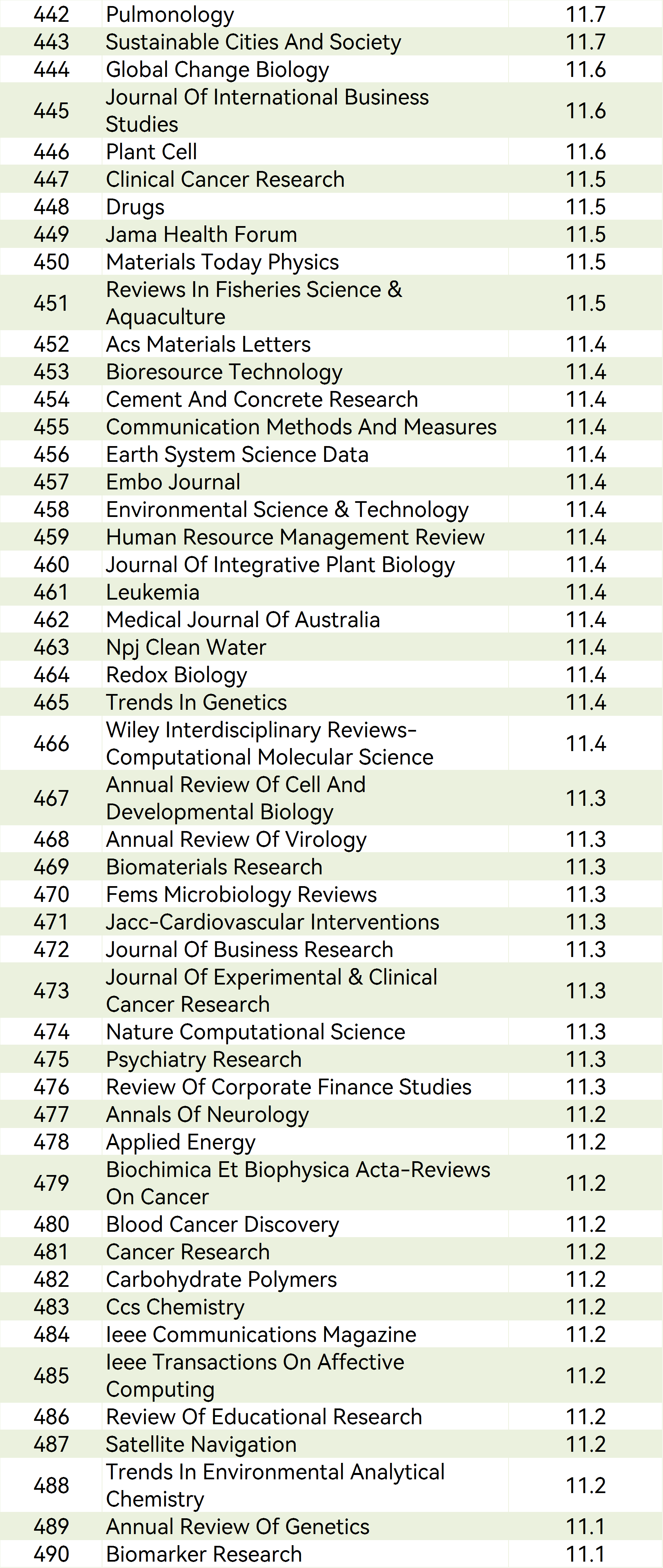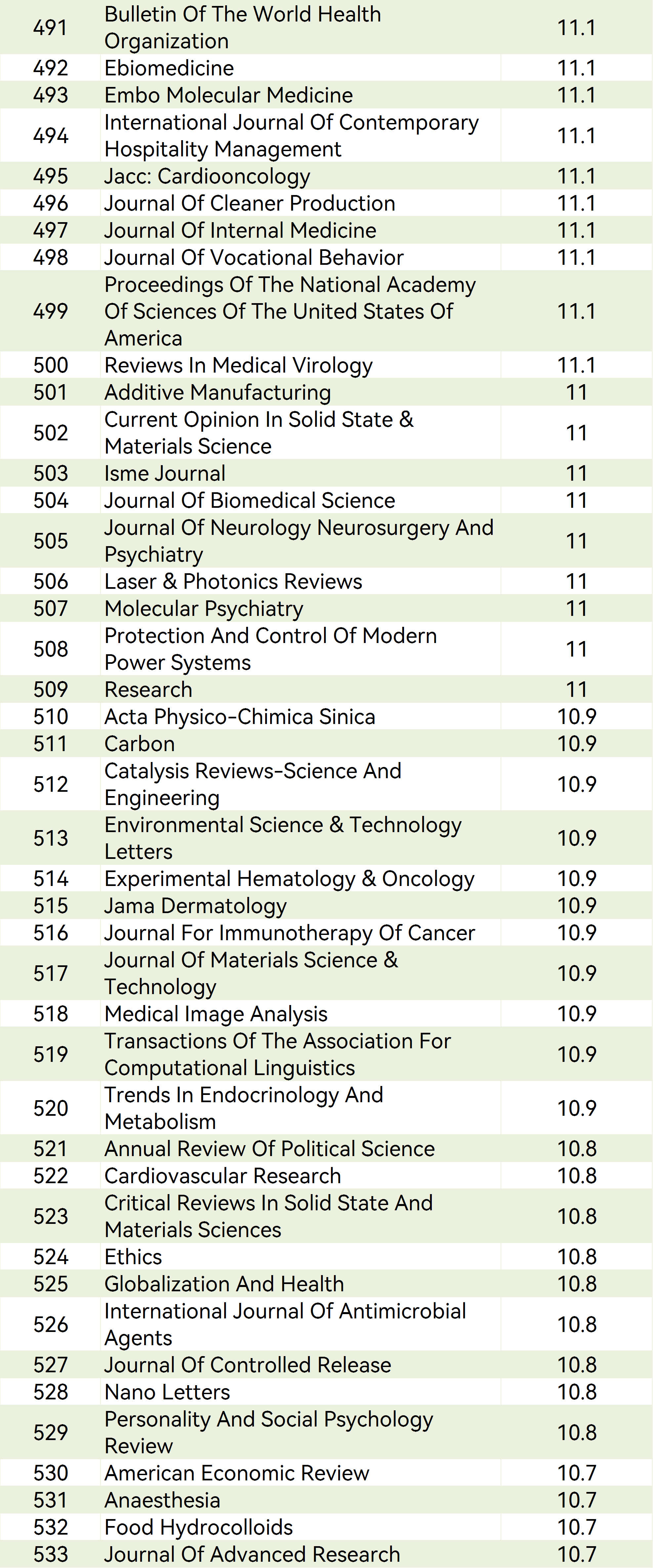 6月28日,2023年影响因子全新出炉啦!让我们一起来看看这些期刊今年的表现吧! 最高分的期刊 Ca-a Cancer Journal For Clinicians(IF=254.7) CNS Cell(IF=64.5) Nature(IF=64.8) Science(IF= 56.9) 前600期刊影响因子排名 分类: 最新重要进展, 每周进展汇总admin六月 29, 2023评论